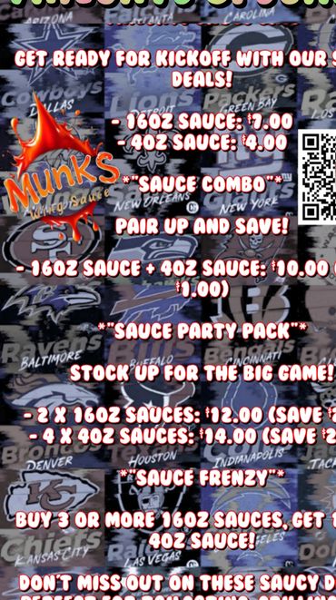Munk's Wing Sauce offers a variety of delicious, homemade wing sauces. What started as a hobby has now become a passionate business, dedicated to providing customers with high-quality, flavorful wing sauces.